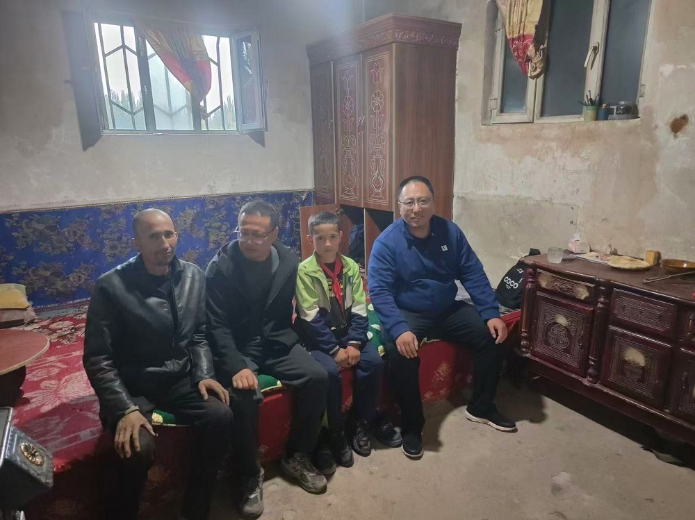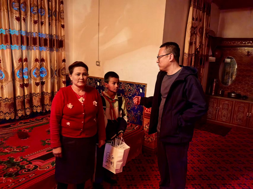 此次援疆干部来到新疆和田墨玉县友谊村,在当地村委会协助下,援疆干部们结识了数名品学兼优的学生。在村民家中,援疆干部与村民及其子女进行了深入交流,细致询问了家庭日常生活状况和孩子们的学习情况,并向学生们赠送了书包、水壶等实用的学习与生活用品。通过真诚沟通,双方互留了联系方式,结下了跨越千山万水的“亲戚”关系。